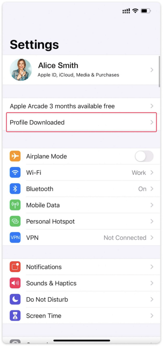 2. Tap on Profile Downloaded.
