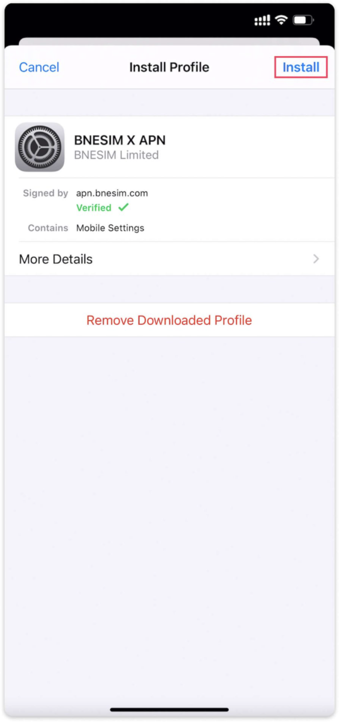 1. Click the button below to download the APN profile.